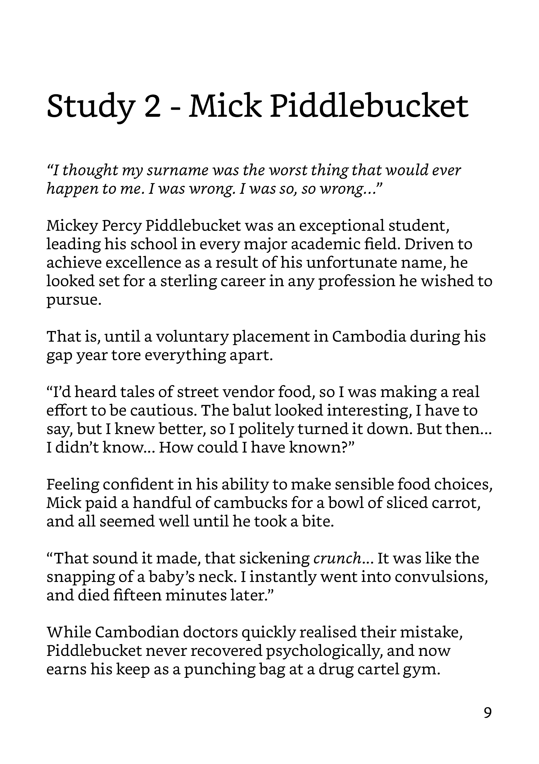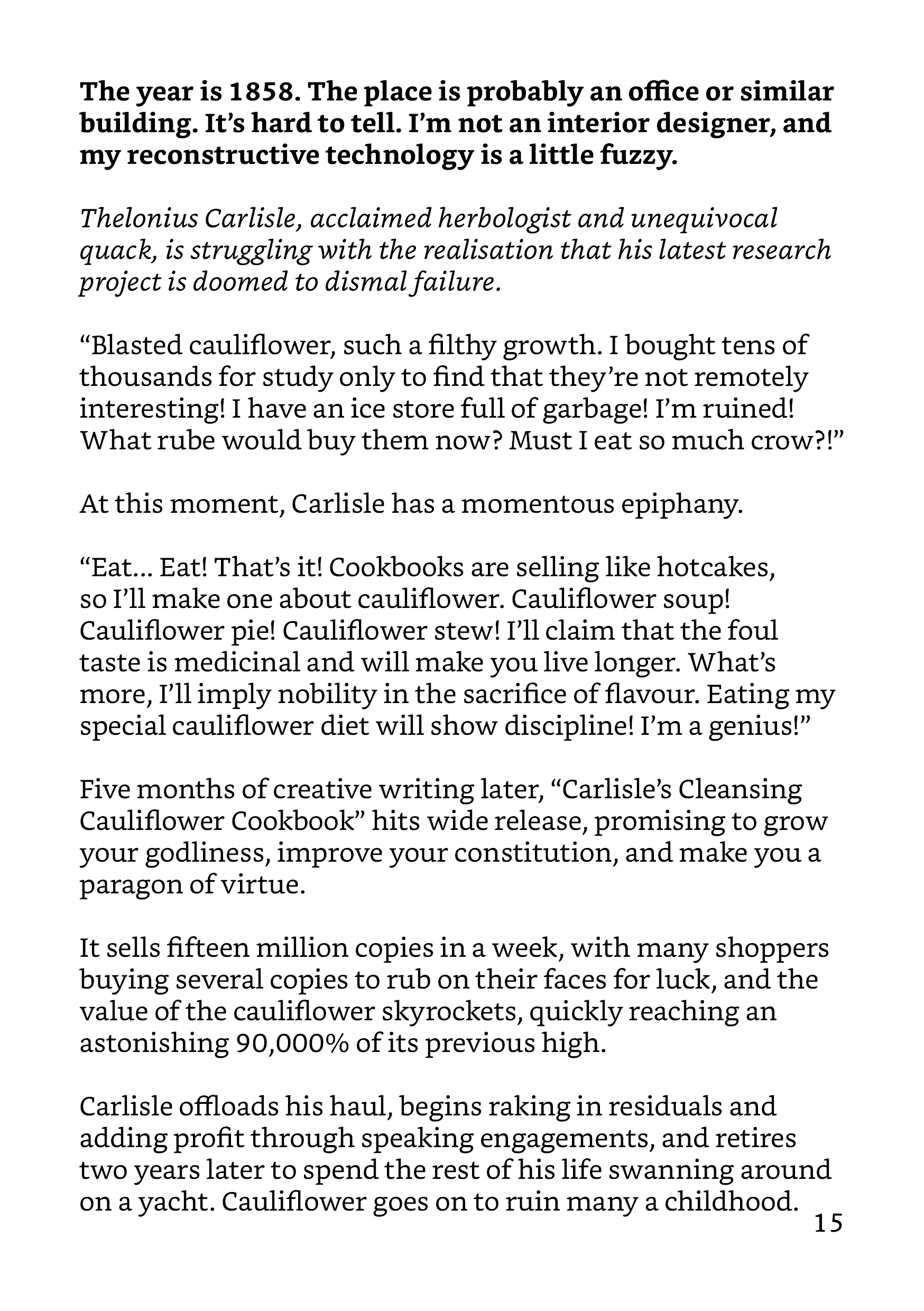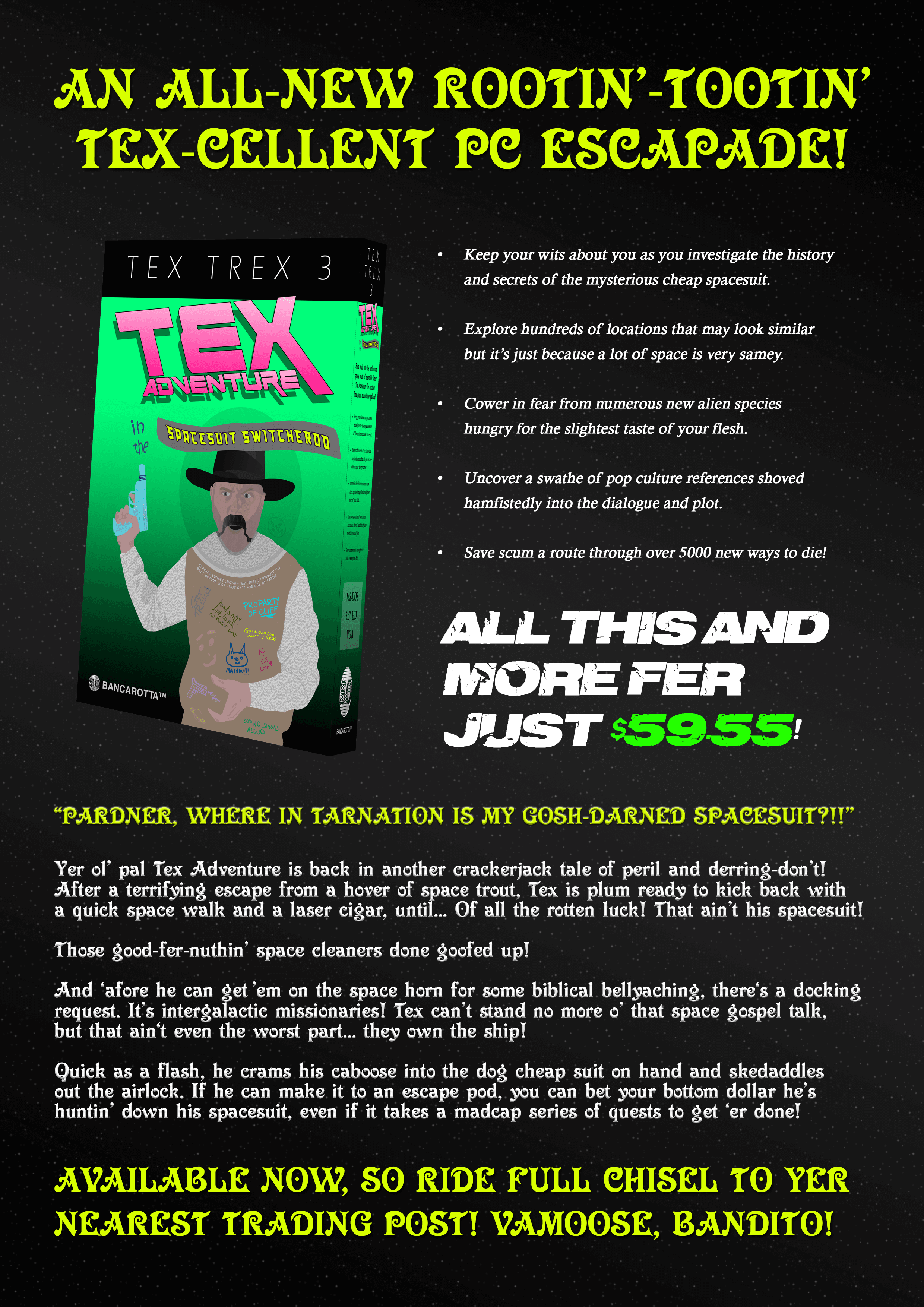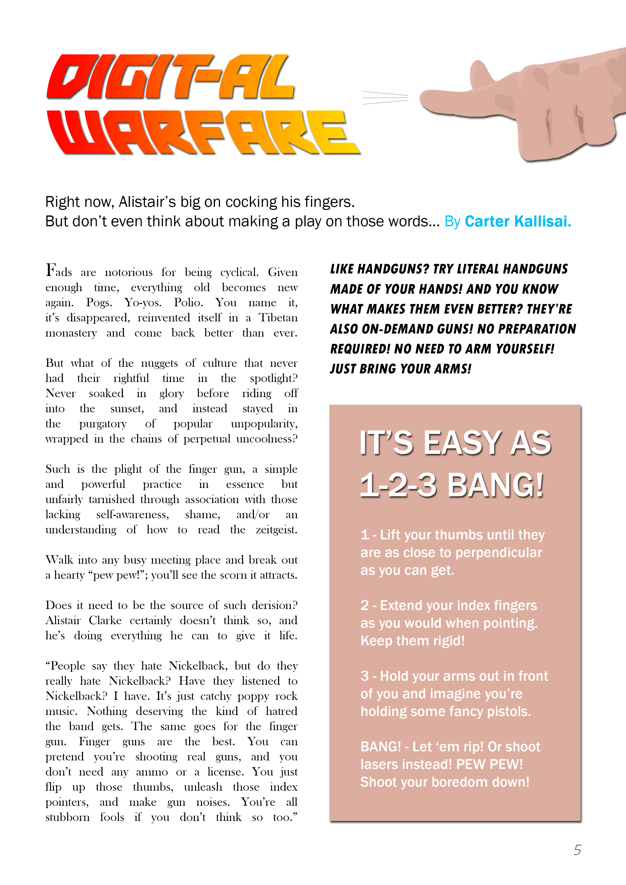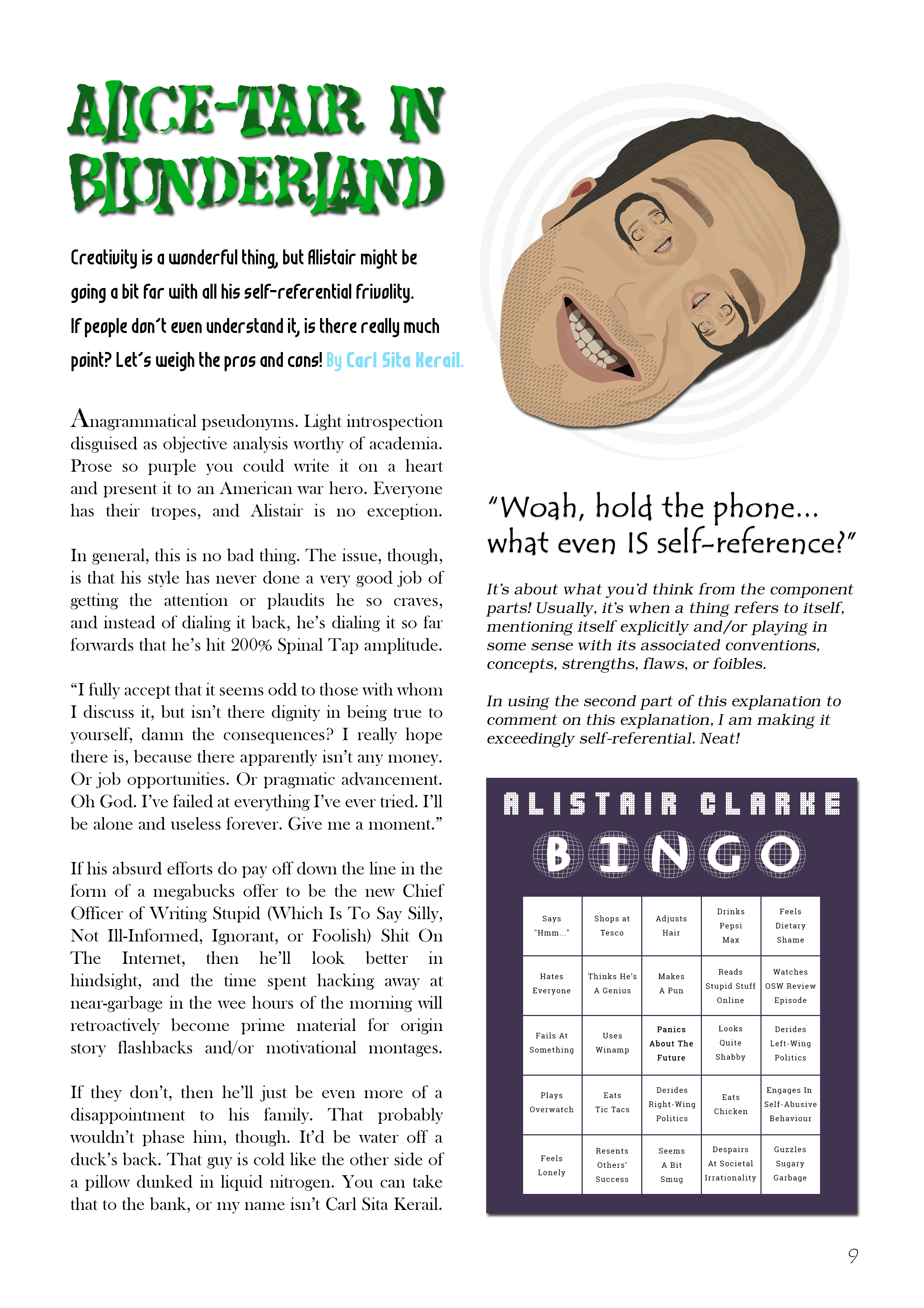 Anonymity as a writer has kept me from producing a conventional portfolio, but it couldn't keep me from churning out this hodgepodge. The following collection of satire and self-reference does prove I can write, though. And create graphics. And design documents. And make poor choices.